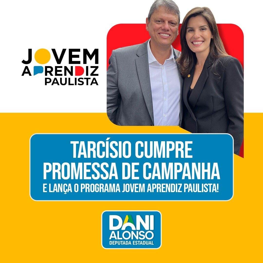 Para a deputada Dani Alonso, vice-líder do PL na Assembleia Legislativa de São Paulo, o Programa Jovem Aprendiz Paulista é uma iniciativa fundamental para a inclusão social e econômica dos jovens do estado. "Eu amo esse tema, acredito de todo meu coração que o caminho da vida de qualquer jovem é ter a oportunidade de trabalhar cedo, sem abrir mão dos estudos. Criar oportunidades e estimular nossos jovens, salvar eles do mundo das drogas, do tráfico, da depressão. Modelo integral: estudo + trabalho", afirmou a deputada.